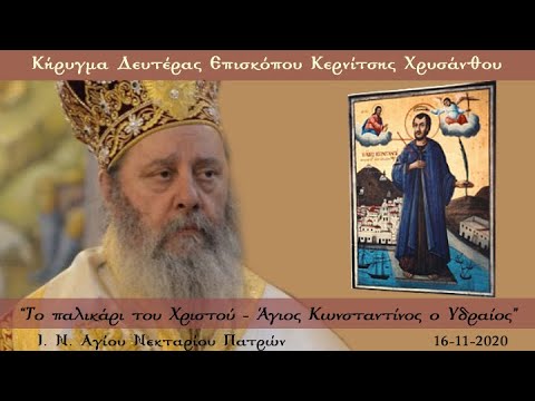 ''Ο Άγιος Νεομάρτυς Κωνσταντίνος ο Υδραίος'' | Κήρυγμα Επισκόπου Κερνίτσης Χρυσάνθου στον Ιερό Ναό Αγίου Νεκταρίου Πατρών | 16-11-20